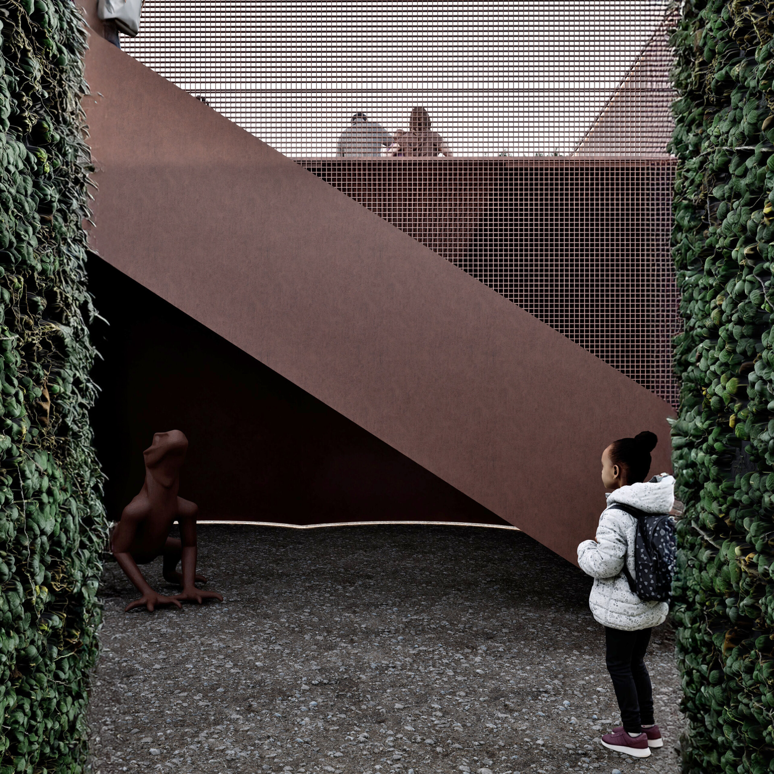 Zóna G je situovaná v severozápadnej časti riešeného územia, s priamym napojením na hlavnú komunikáciu a pohodlným prístupom k parkovacím miestam. Jej dominantným prvkom bude pódium určené na konanie rôznych kultúrnych a spoločenských podujatí, ako sú koncerty, festivaly, divadelné predstavenia, komunitné stretnutia či tematické trhy. Vďaka svojej polohe je zóna čiastočne oddelená od ostatných častí areálu, čo umožňuje organizovať podujatia bez výrazného zásahu do prevádzky labyrintu a ostatných funkčných zón. Táto separácia zabezpečuje plynulý chod celého územia aj počas konania väčších akcií. Zóna je navrhnutá flexibilne, aby umožnila prispôsobenie priestoru rôznym typom akcií – od menších komunitných podujatí až po väčšie verejné zhromaždenia. Súčasťou návrhu je aj možnosť dočasného umiestnenia gastro prevádzok, stánkov s občerstvením alebo predajných miest, ktoré budú dopĺňať funkciu zóny počas podujatí.