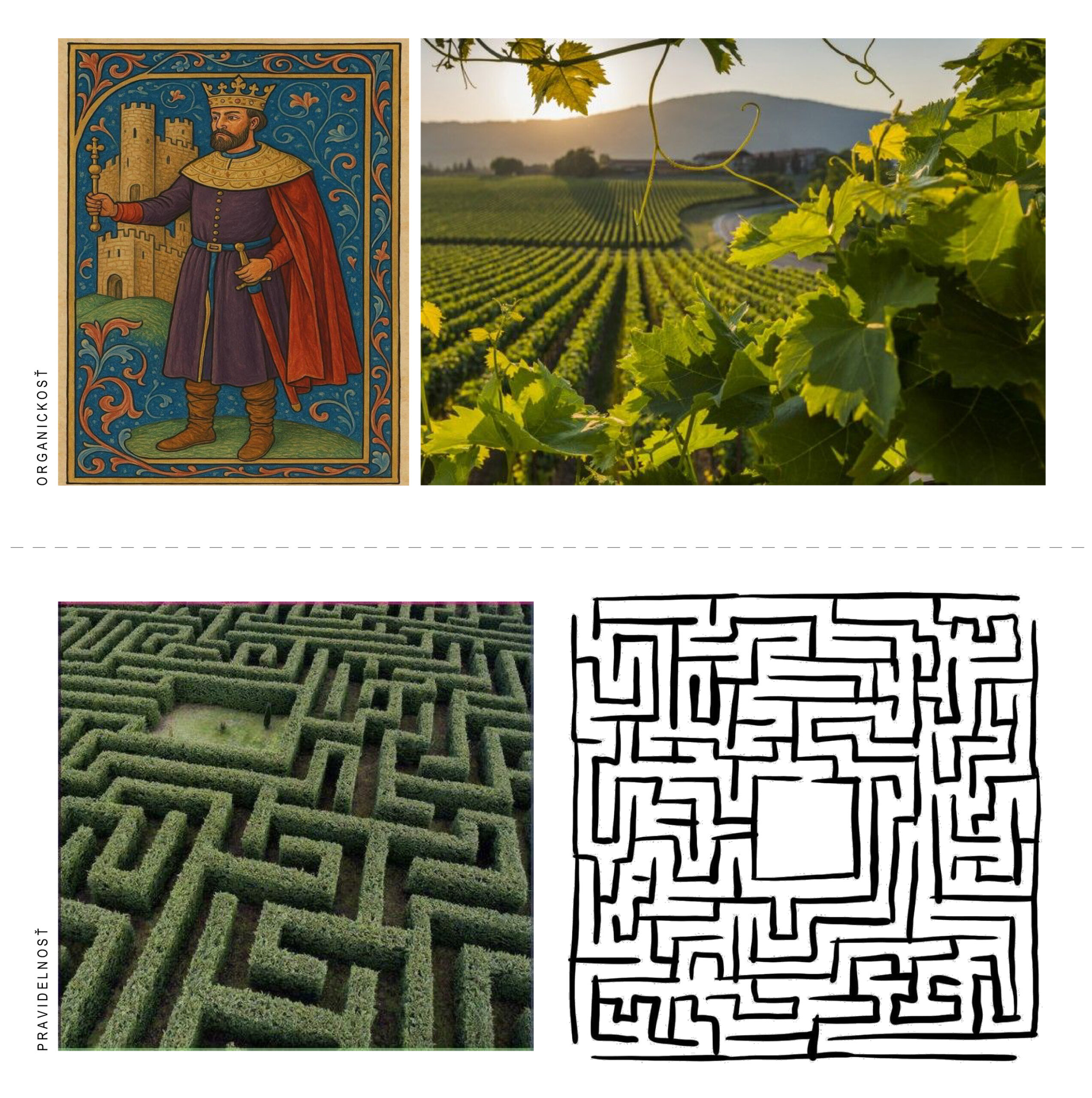 Medzi centrálnym labyrintom a lesným porastom je navrhnutý prírodný labyrint, ktorý je integrovaný do existujúcej zelene a doplnený výsadbou nových stromov, drevín a krov. Tento priestor prirodzene nadväzuje na krajinný charakter územia a vytvára prechod medzi upravenou časťou areálu a okolitým prírodným prostredím. Základom riešenia je sieť nepravidelných, organicky tvarovaných chodníkov, ktoré definujú členitý systém plôch zelene. Tieto plochy budú tvoriť kombinácia stromovej zelene s porastom krov, doplnená trávnatým porastom. Výsadba je navrhnutá tak, aby podporovala biodiverzitu, zachovávala prirodzený vzhľad územia a zároveň vytvárala pocit postupného prelínania medzi labyrintom a lesným okrajom.