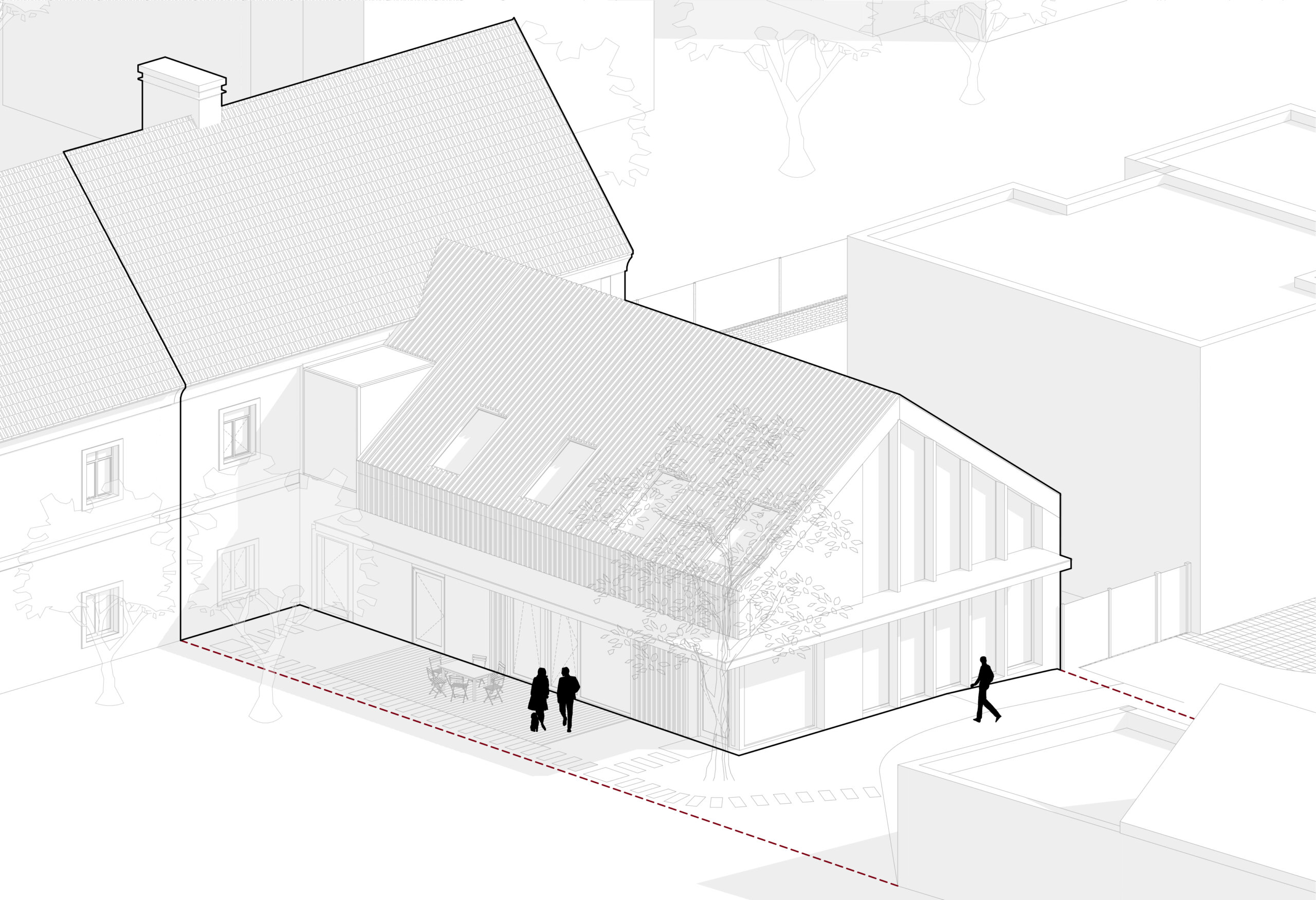 Hlavnou ideou urbanistického riešenia bolo akceptovanie pôvodnej urbánnej štruktúry pamiatky. Prístavby, alebo nadstavby v projekte nie sú uvažované. Pôvodné malé drobné objekty, ktoré boli časom k objektu dostavané budú odstránené. K uchovaniu logiky objektu je obnova navrhovaná tak, aby bola zachovaná poloha existujúceho vstupu. Vstup je priamo napojený na nádvorie. K existujúceho objektu bude dostavaná prístavba v pôvodnom otlačku zrúteného krídla, avšak iba po uličnú čiaru, ktorá je zadefinovaná novou výstavbou rodinných domov v susedstve. Hlavný vstup prístavby bude riešený od strany nádvoria. Bočný vstup slúžiaci pre majiteľov sa bude nachádzať na opačnej strane, od pozemku, ktorý je v ich vlastníctve. Príjazd na pozemok je existujúci. Plocha na parkovanie je navrhnuté pred prístavbou priamo napojená na existujúcu komunikáciu.
