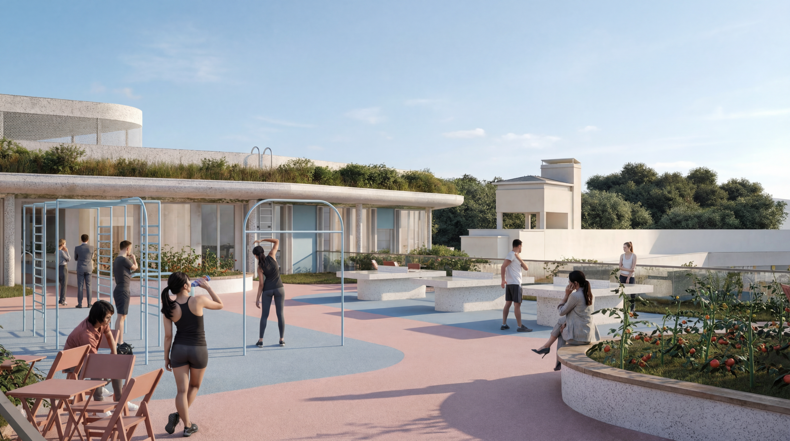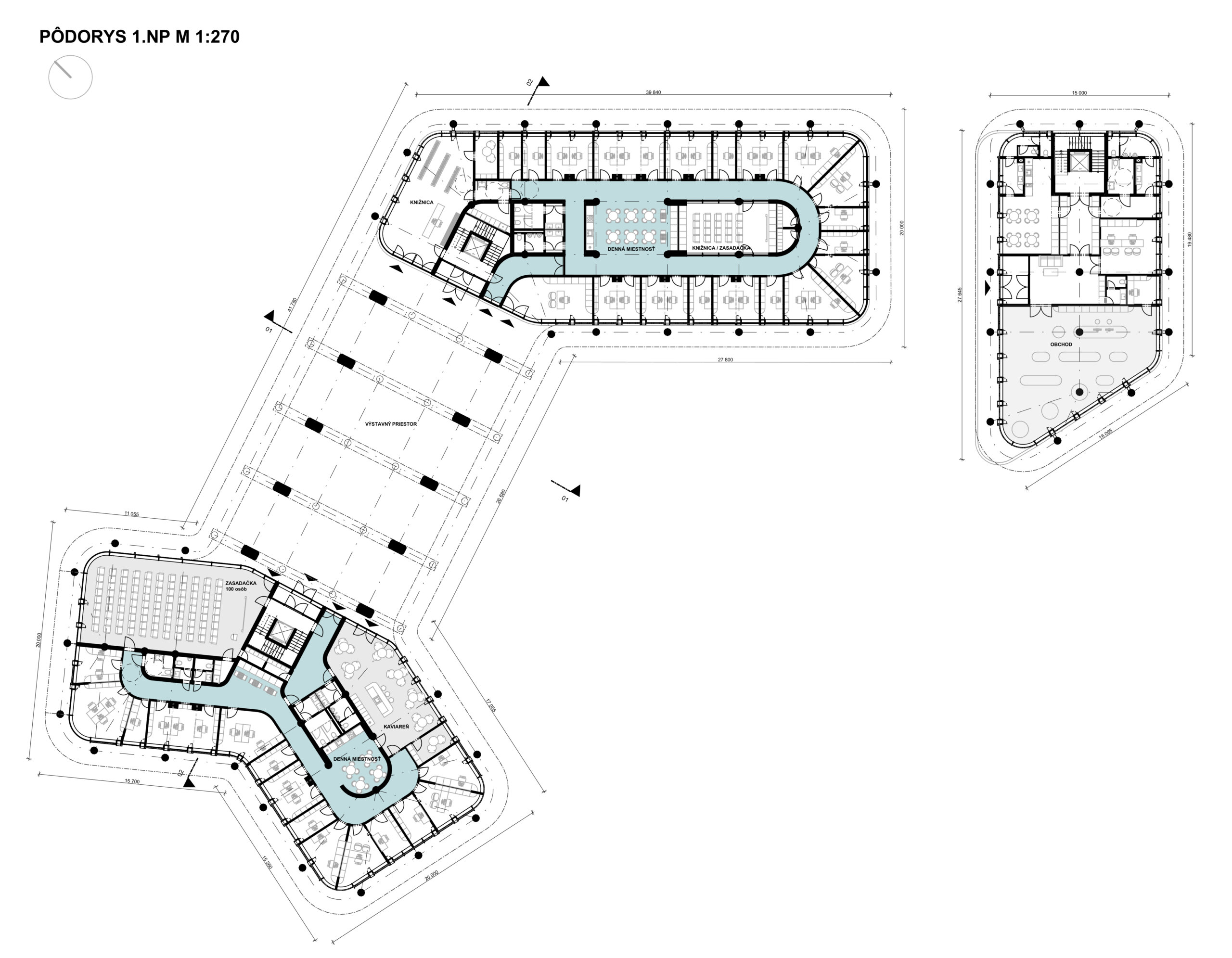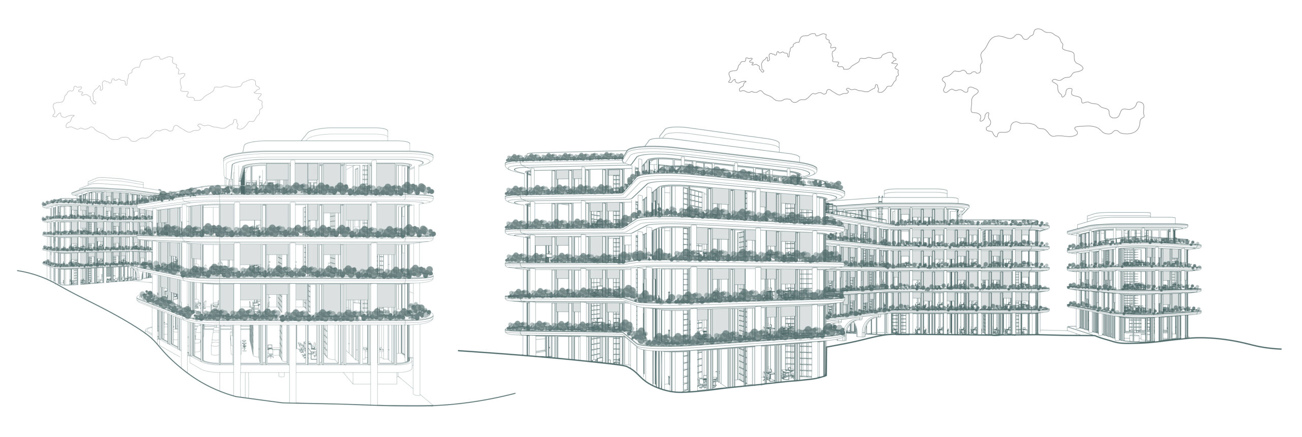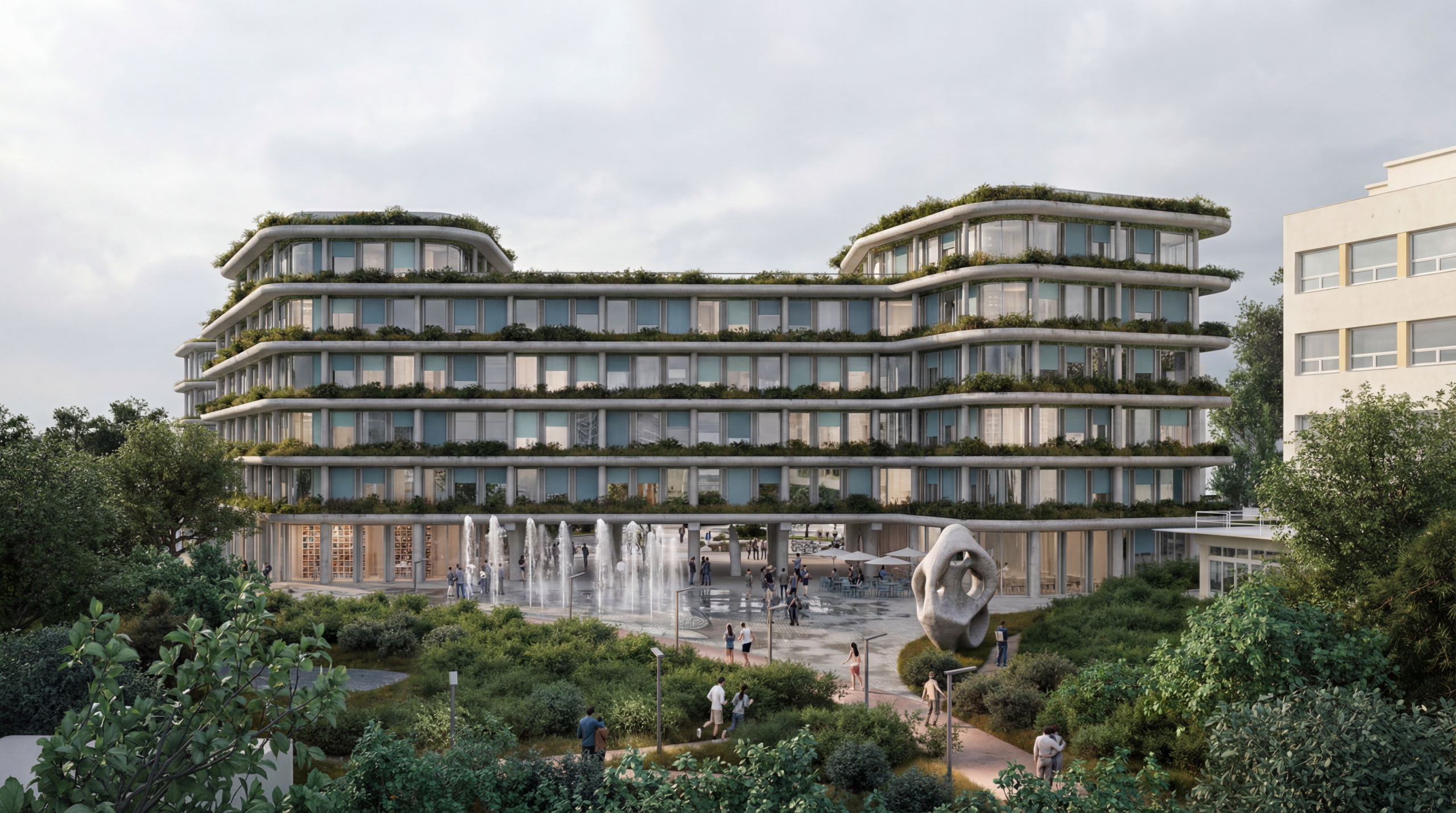 - vytvorenie vnútorného námestia medzi budovami, ktoré priamo prepláva ku parku Helix vďaka zdvihnutému partru
