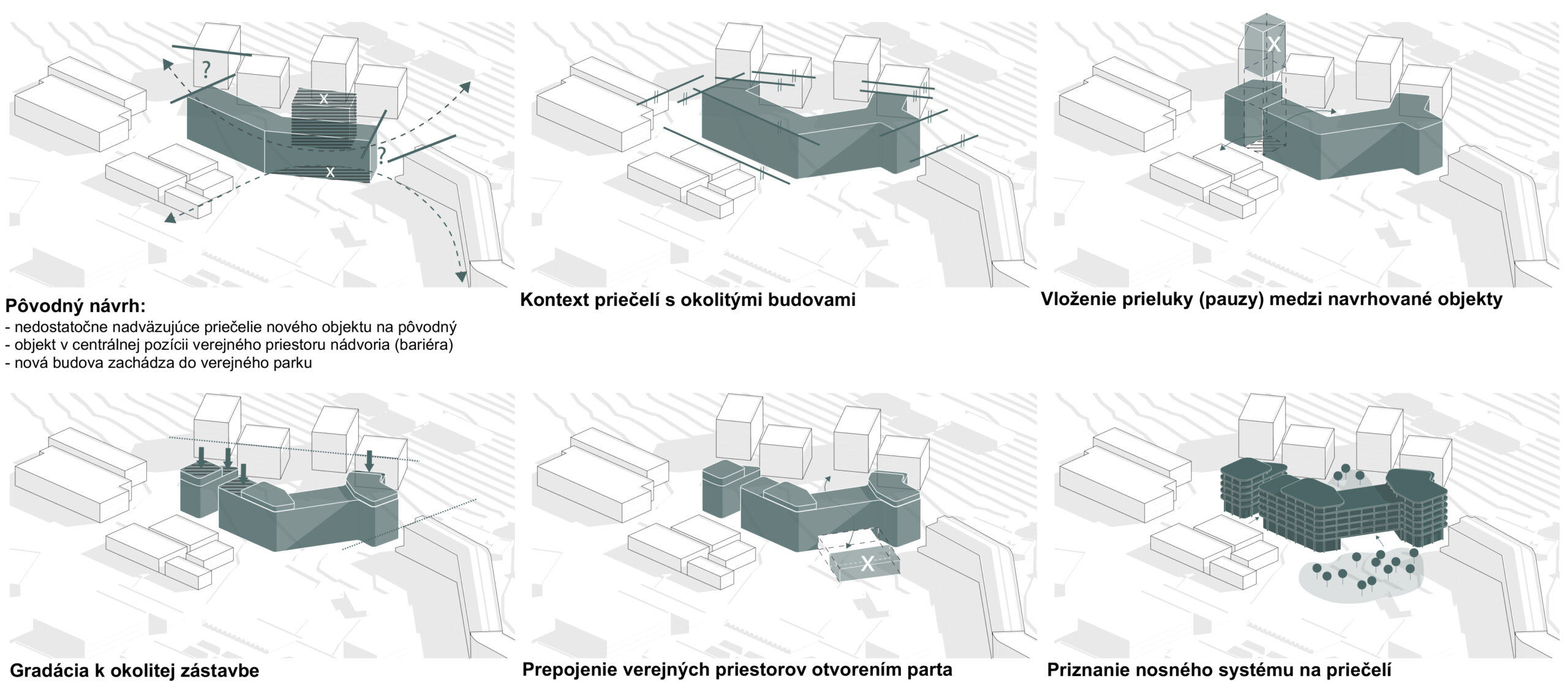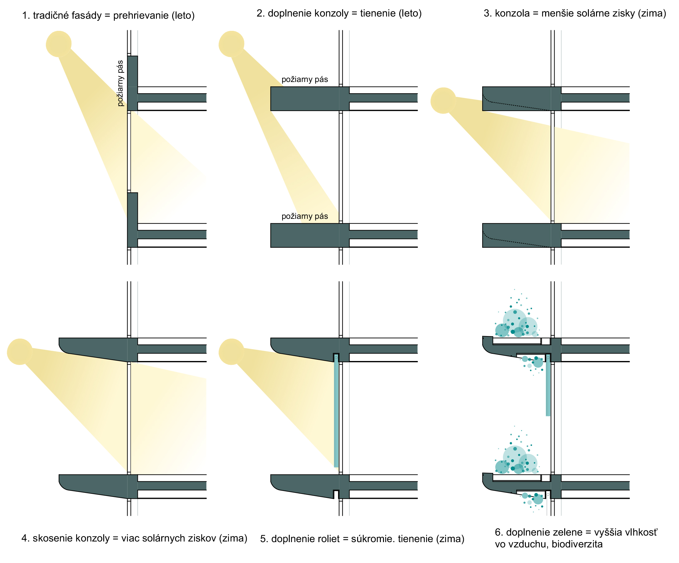 - rovnobežná reakcia priečelí na okolitú zástavbu (súčasnú, navrhovanú)