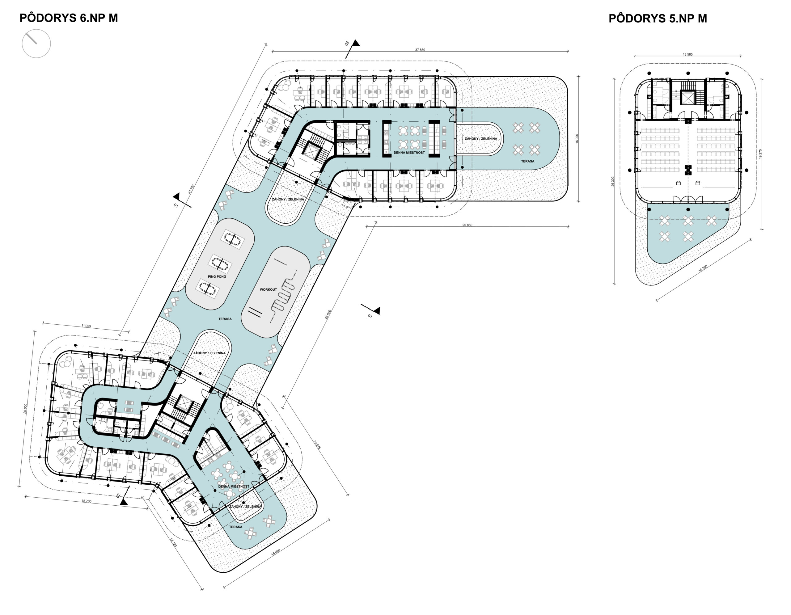 - gradácia k okolitej zástavbe vysúvaním ustúpených podlaží