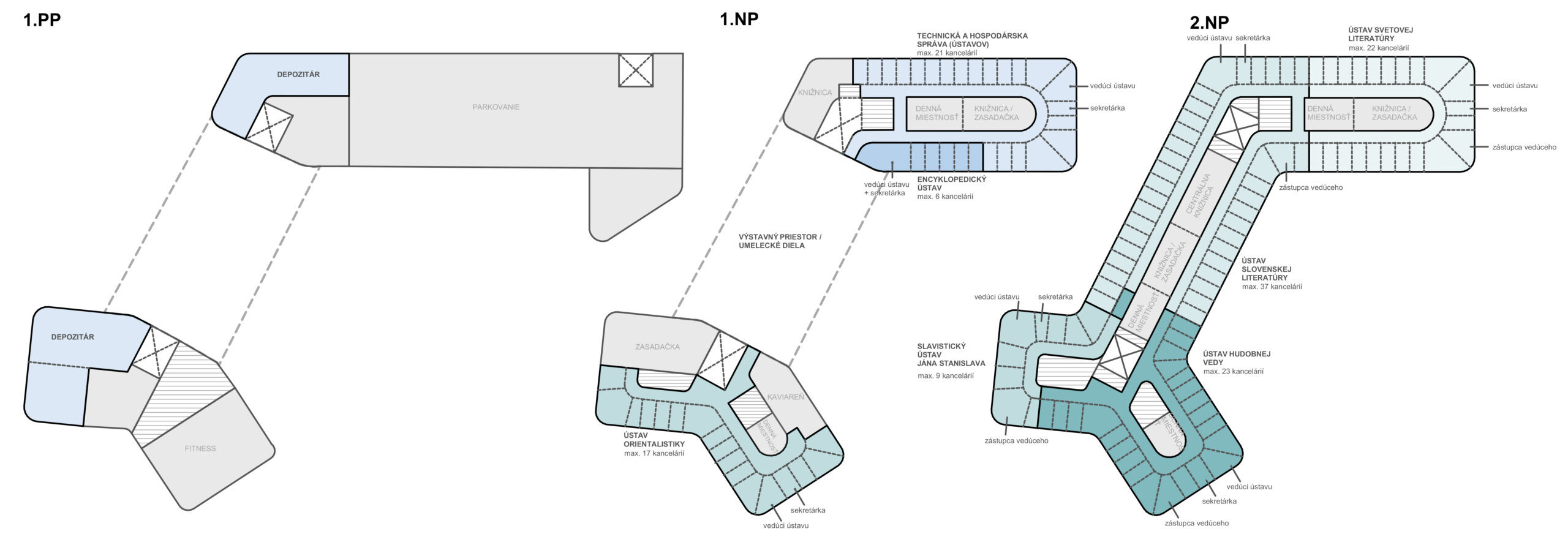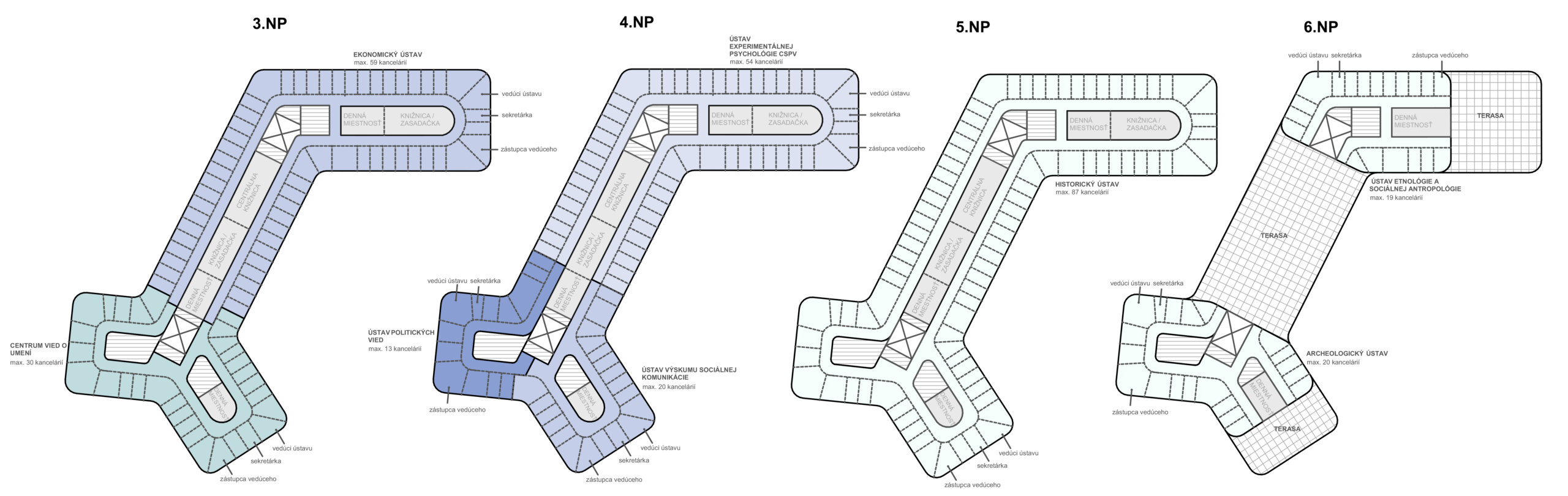 V prvom kroku bol posúdený navrhovaný tvar objektov zadaných v rámci sútažných podkladov. Jeho reakcia so zlomeným krídlom na susedný objekt Chemického ústavu (CHÚ) bola inšpiráciou pre predmetný návrh. Viaceré aspekty podnietili reflexiu o čiastočnom odklone od pôvodného návrhu: