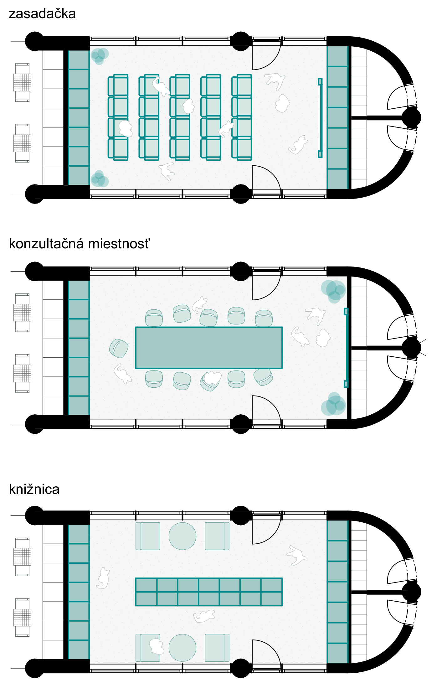 - presunutie budovy z nádvoria do krajnej pozície riešeného územia (objekt nie je bariérou v priestore)